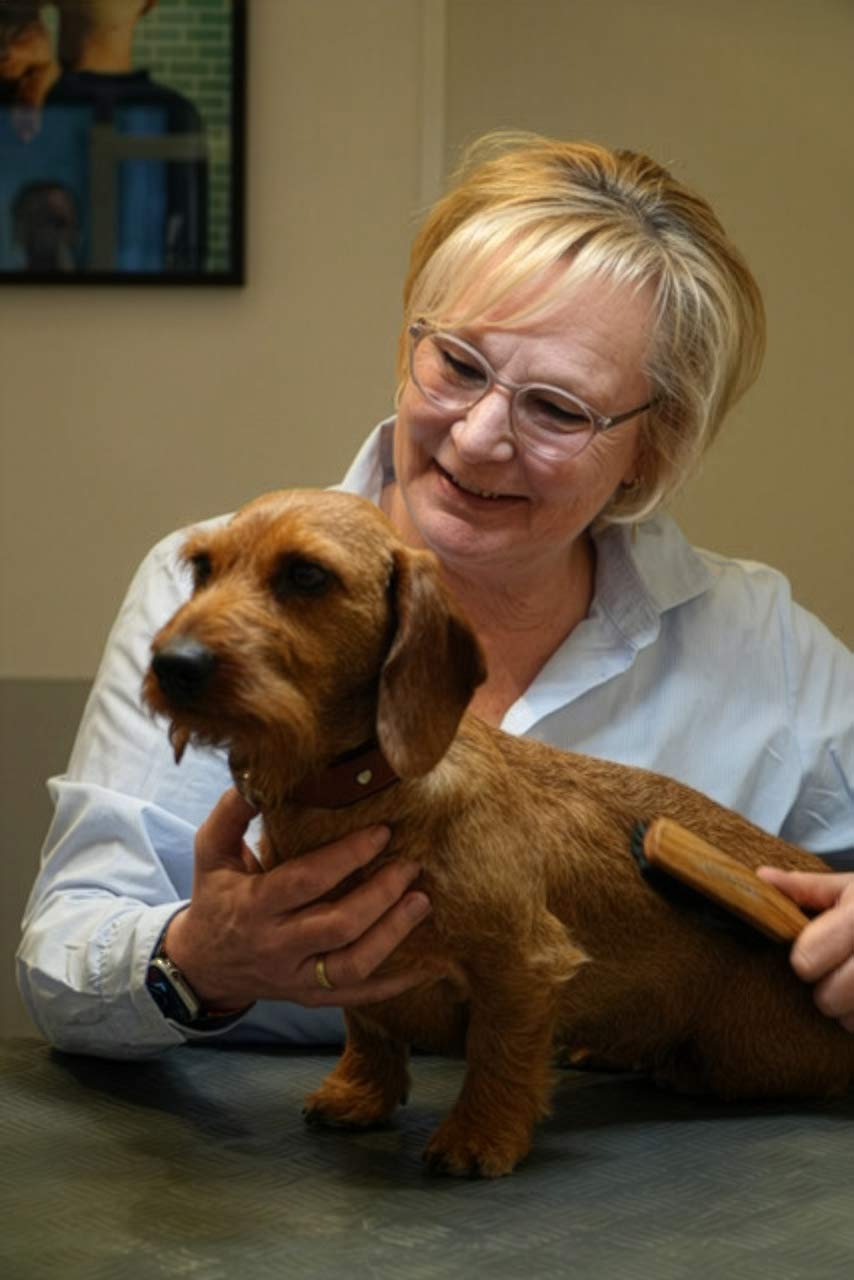 und hat sich mit Herz und Fachwissen auf natürliche Hundefrisuren und insbesondere auf die Pflege von Dackeln spezialisiert.